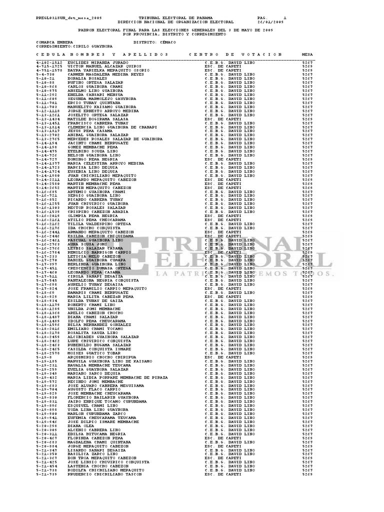 Todo ciudadano tiene el deber de obtener su cédula de identidad personal y a su inclusión en el registro electoral.asi mismo, el tribunal electoral tiene la obligación de facilitar la expedición de cédulas de identidad personal y de incluir a los ciudadanos en el registro electoral. Aunado a ello, el tribunal electoral de panamá, específicamente en la oficina de la dirección nacional de organización del. La chorrera cod corregimiento corregimiento electores 1 barrio balboa 20,997 1 barrio balboa total : Titulo i sufragio y padron electoral. 20,997 2 barrio colon 18,781 2 barrio colon total.